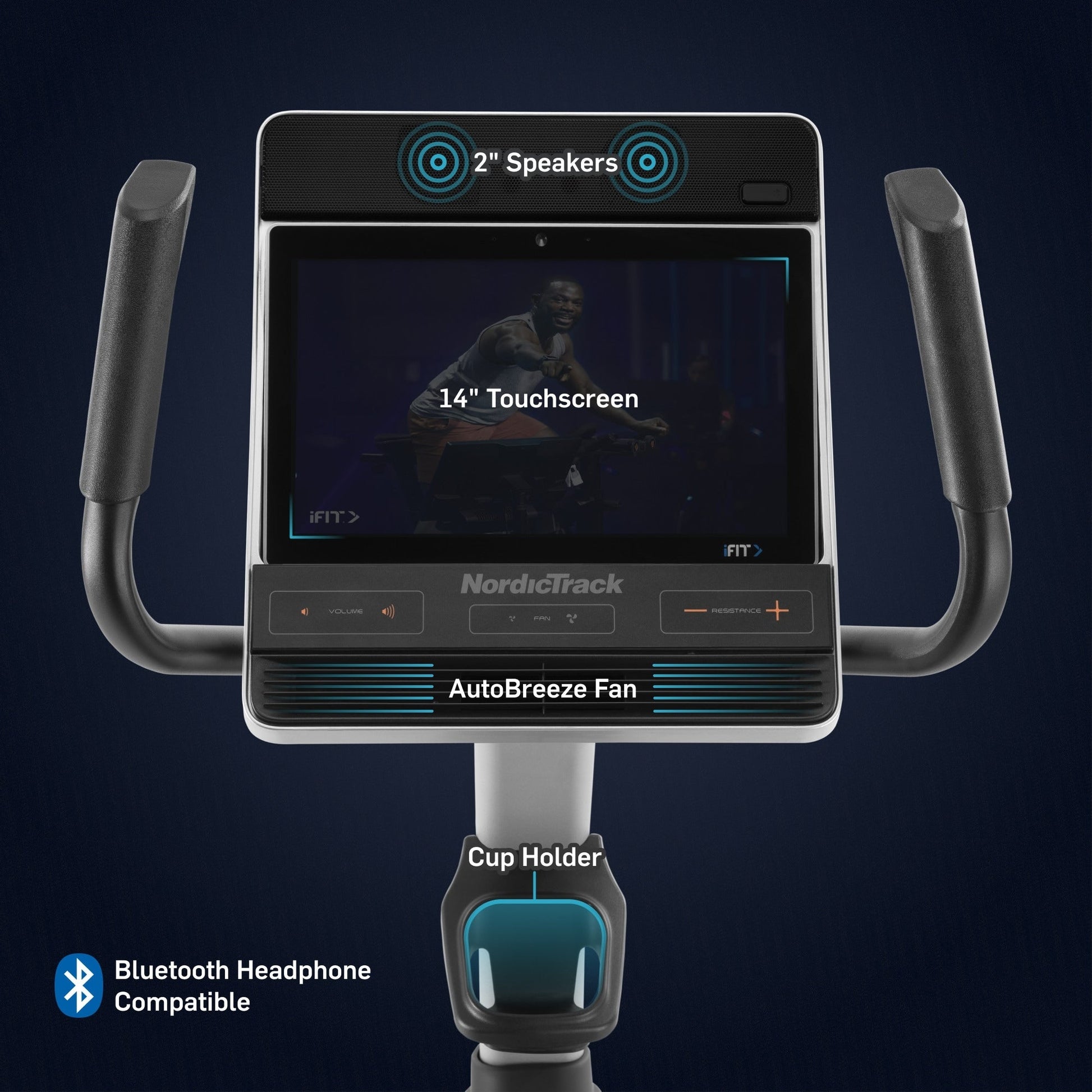 - 2 haut-parleurs intégrés de 2 pouces pour profiter d'un son clair de votre entraîneur, de son environnement et de la musique pendant chaque entraînement.
