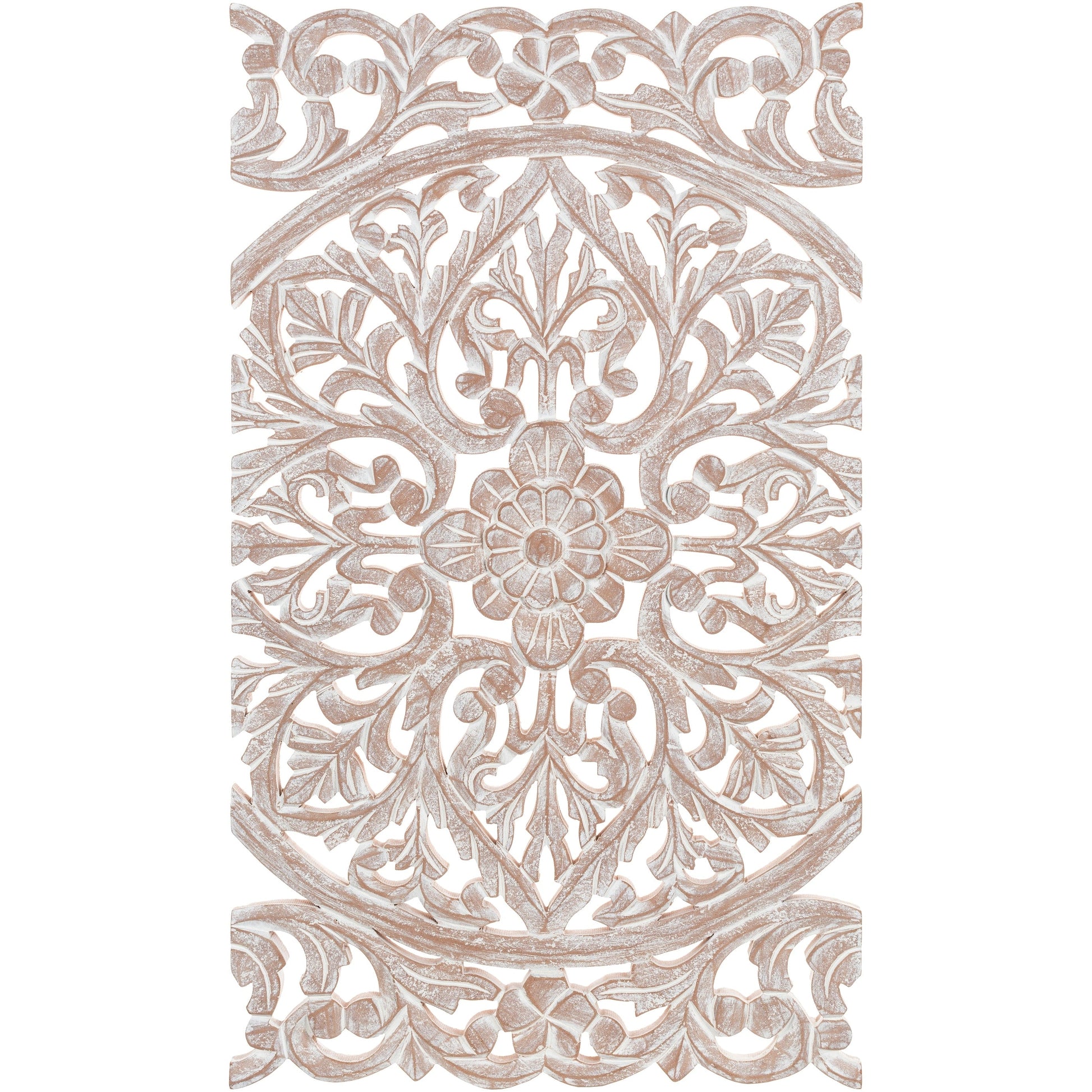 Norma - Tableau mural en bois naturel sculpté à la main, motif floral, 3 panneaux, 122 x 71 cm (48x28 pouces)