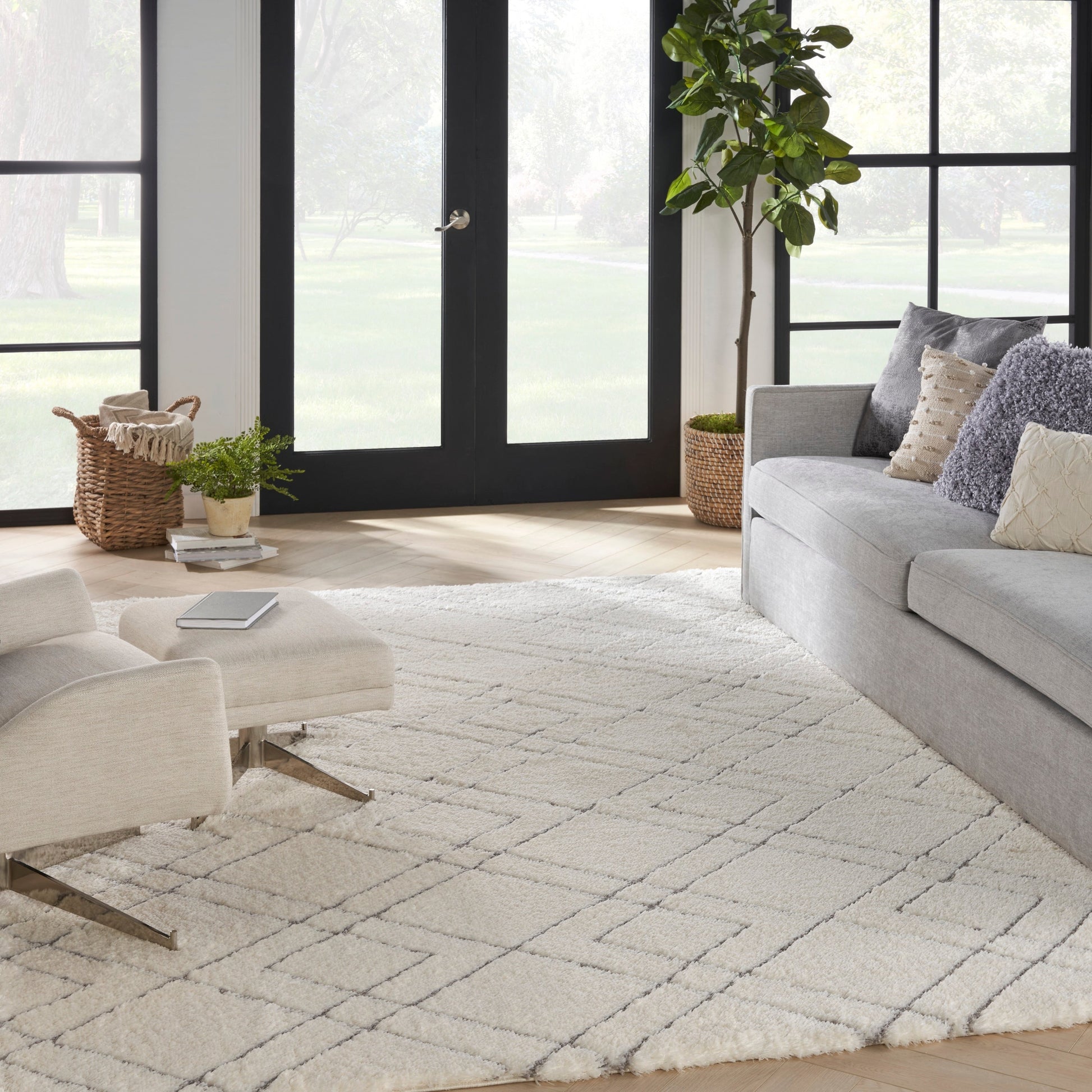 Avec son motif simple d'inspiration scandinave et sa base ivoire neutre, ce tapis Shag luxueux apporte chaleur et confort à votre espace. Fabriqué en polyester ultra-doux, il possède une pile épaisse de 38 cm (1,25') dans laquelle vous adorerez enfoncer vos pieds. Placez ce tapis géométrique dans votre salon ou votre chambre à coucher pour une touche instantanée de style douillet et accueillant.