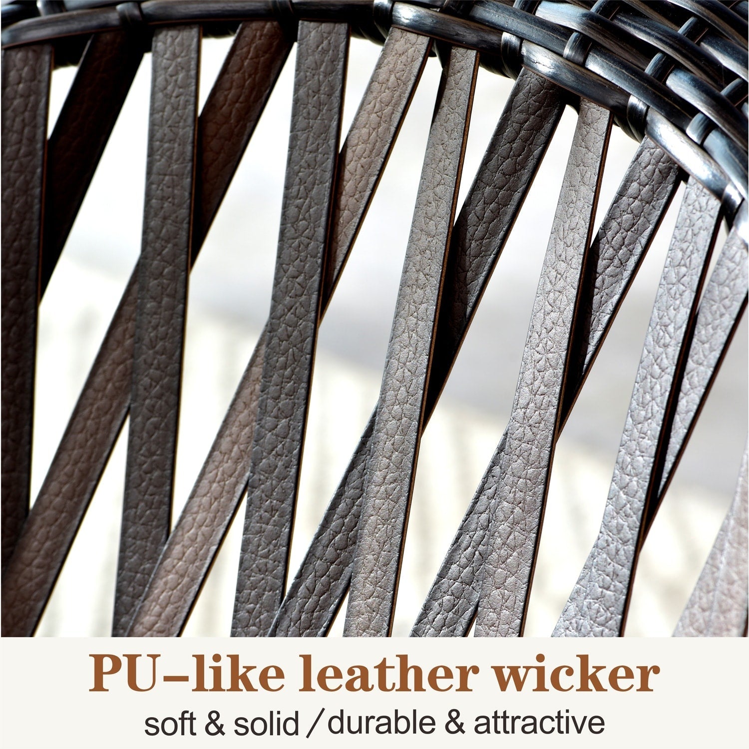 Créez une oasis extérieure confortable avec l'ensemble bistro à bascule Ovios 3 pièces avec table basse en verre. Conçu pour votre confort, cet ensemble comprend deux chaises à bascule avec coussins d'assise et coussins de dos amovibles, et une robuste table basse en verre, idéale pour poser des boissons ou des en-cas. Le rotin brun double-tissage et le cadre en acier thermolaqué rendent cet ensemble durable et résistant aux intempéries, idéal pour tout espace extérieur. Le montage est un jeu d'enfant, et le design ergonomique des chaises vous permet de vous détendre avec style.