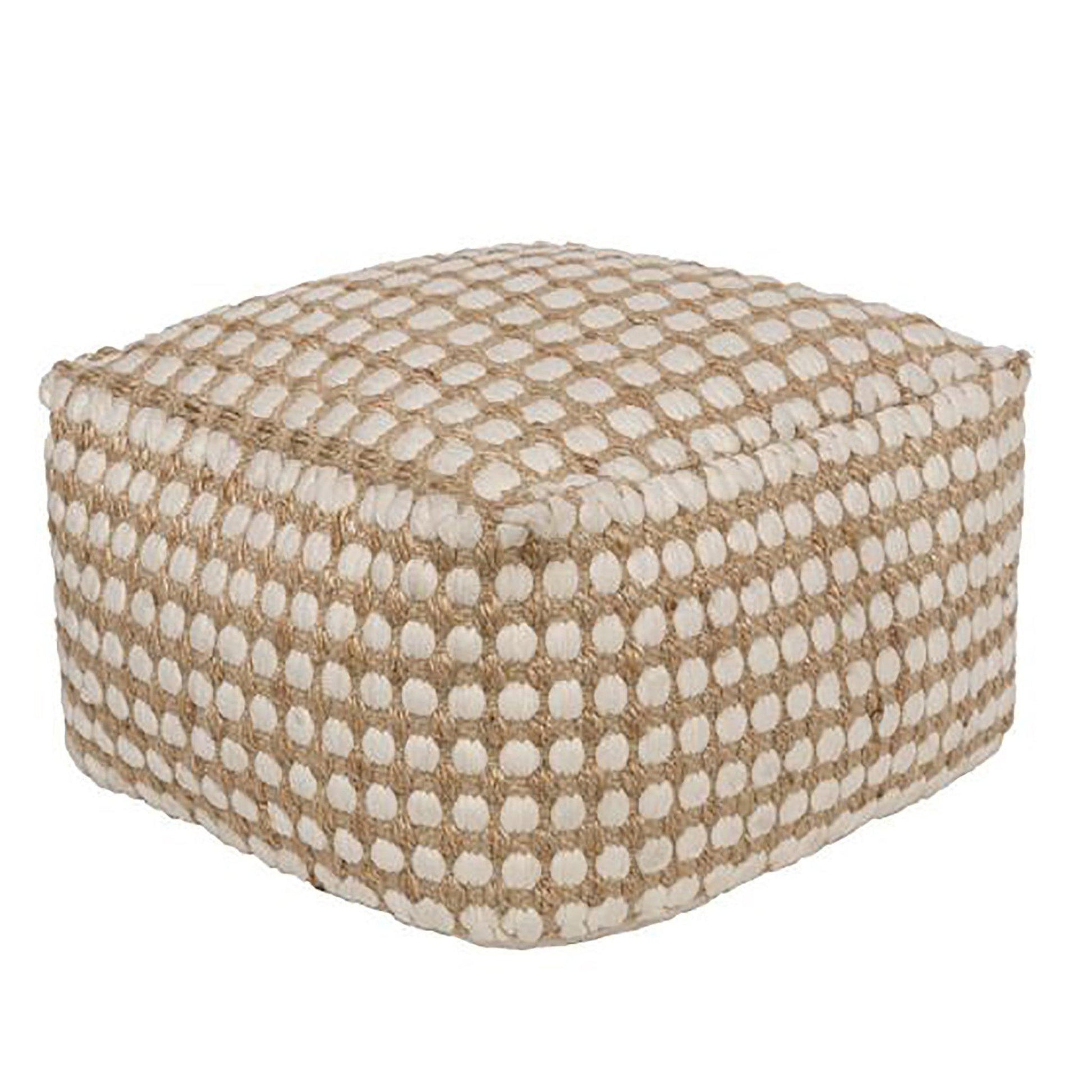 The shape of the Owen and its woven material makes it sturdier than a traditional pouf used as a cushion on the floor. Its build is suitable for use as a decorative element, supplemental seating, or an alternative tabletop or plant stand.