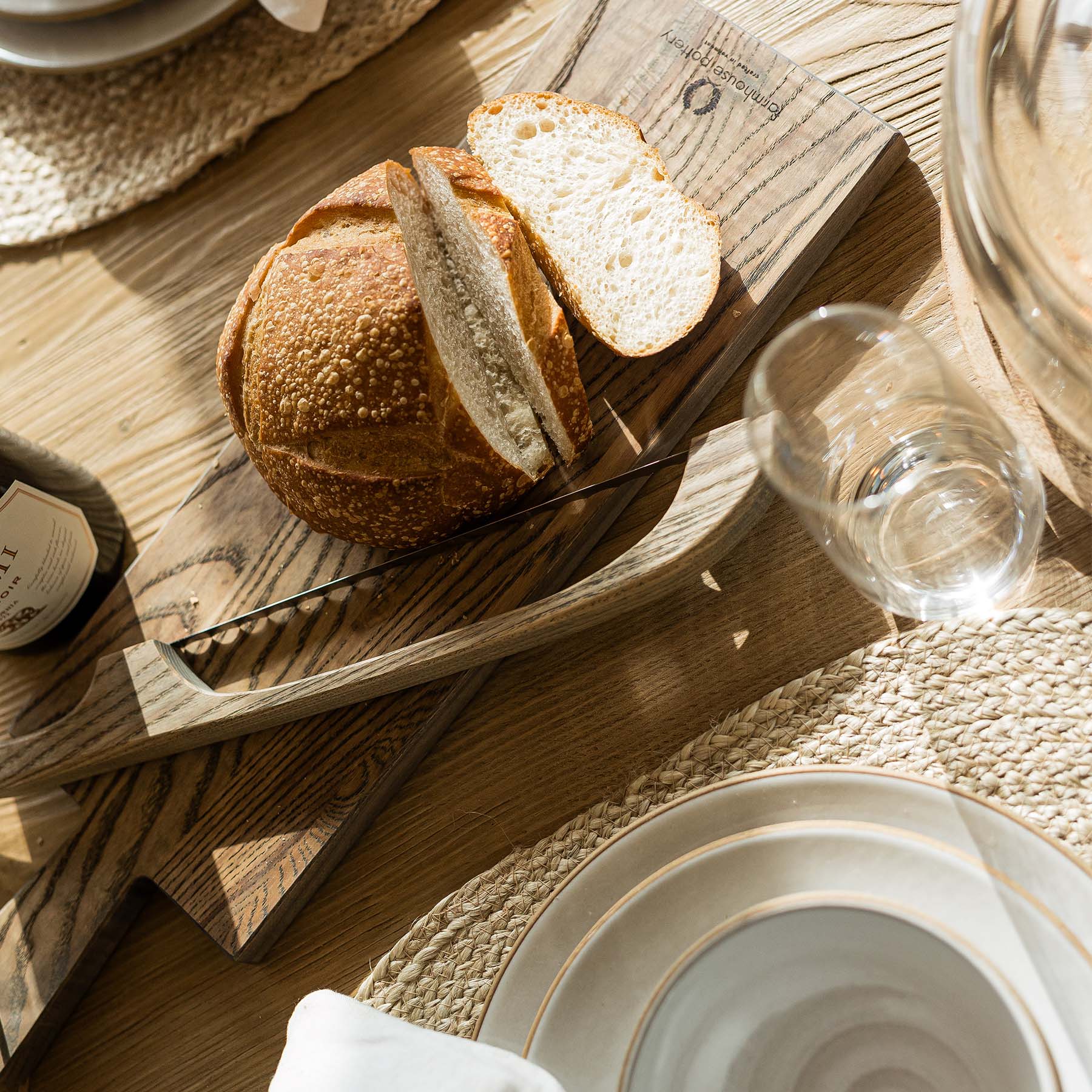 Crafted from solid wood, the Pantry Board and Bow Set is as functional as it is beautiful. Designed for slicing and serving, its natural grain and timeless design make it a kitchen essential.