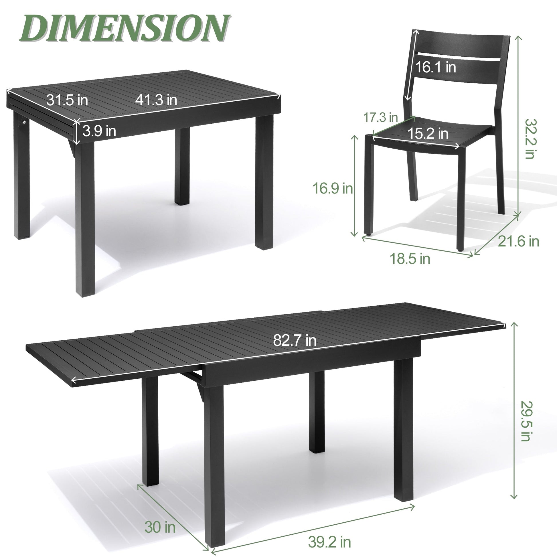 Rendez votre été exceptionnel avec cet ensemble de repas d'extérieur en aluminium de 5/7/9 pièces. Avec une table et des chaises extensibles, cet ensemble est conçu pour accueillir des invités inattendus tout en gagnant de l'espace, ce qui le rend idéal pour les petits espaces extérieurs. Son design moderne apporte une touche chic à n'importe quel espace extérieur et rehausse la décoration de votre patio, parfait pour les repas et les divertissements en plein air. ???
