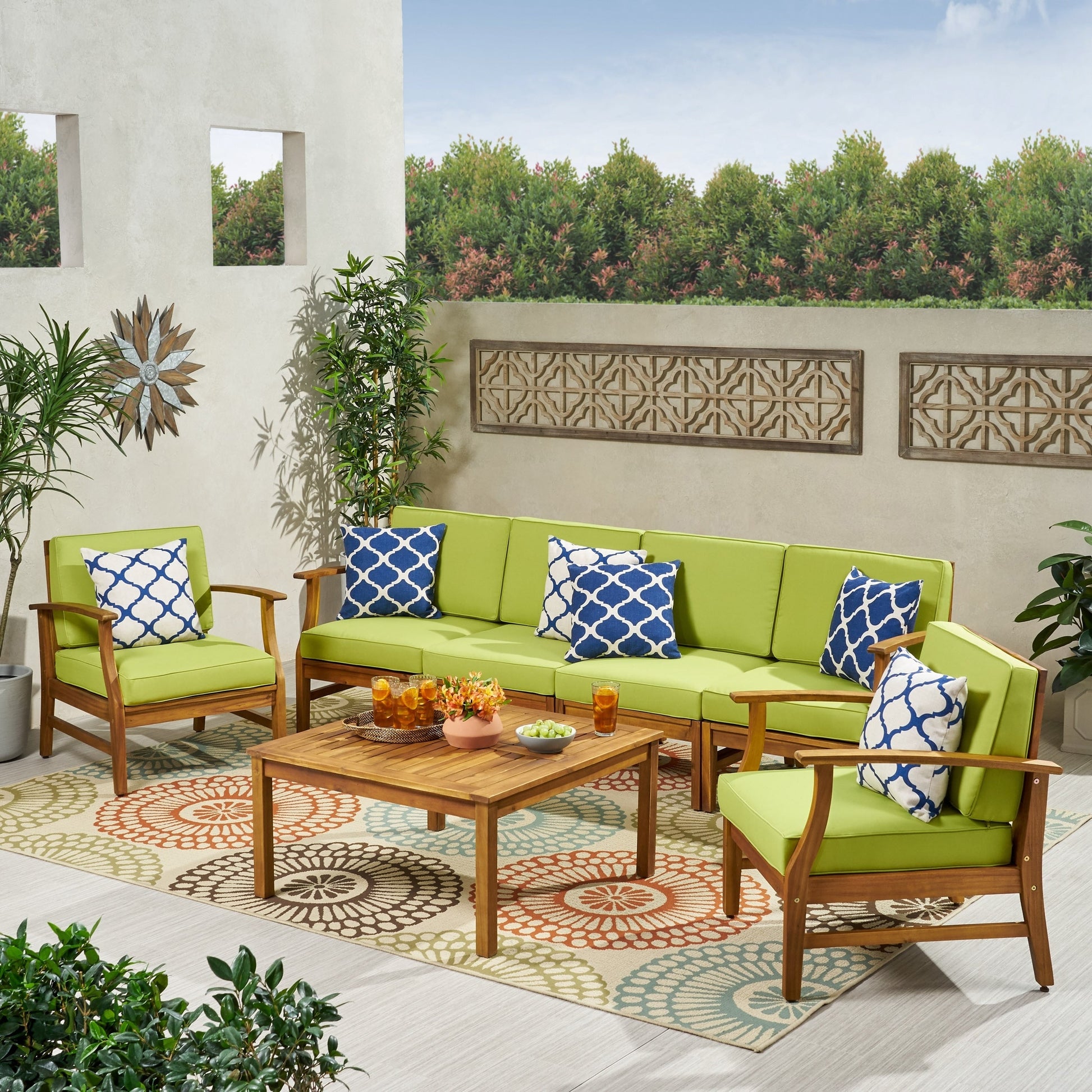 Créez un espace confortable pour vos rassemblements en plein air avec cet ensemble de conversation de jardin. Cet ensemble comprend sept éléments qui peuvent être disposés de différentes manières pour s'adapter parfaitement à votre espace. Les cadres en bois d'acacia durable et les coussins résistants à l'eau garantissent une qualité durable. Disponible en plusieurs couleurs, cet ensemble est un meuble de longue durée dont vous pourrez profiter pendant des années.
