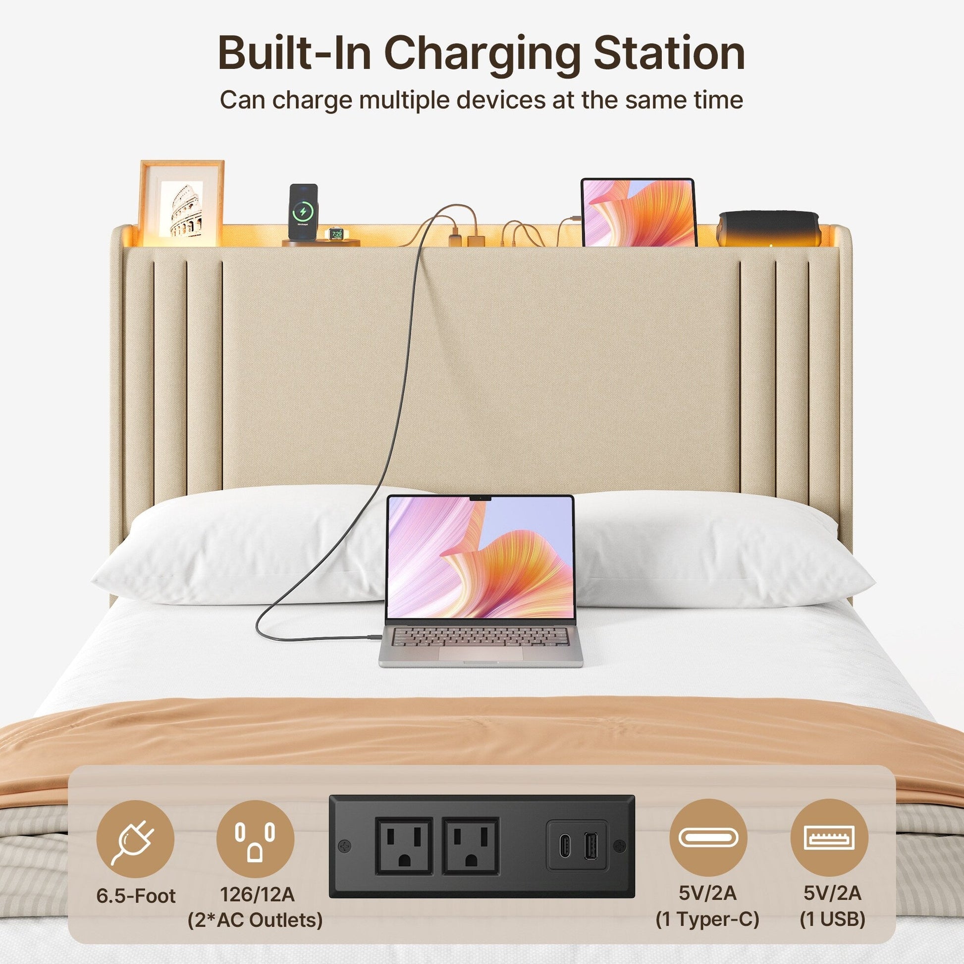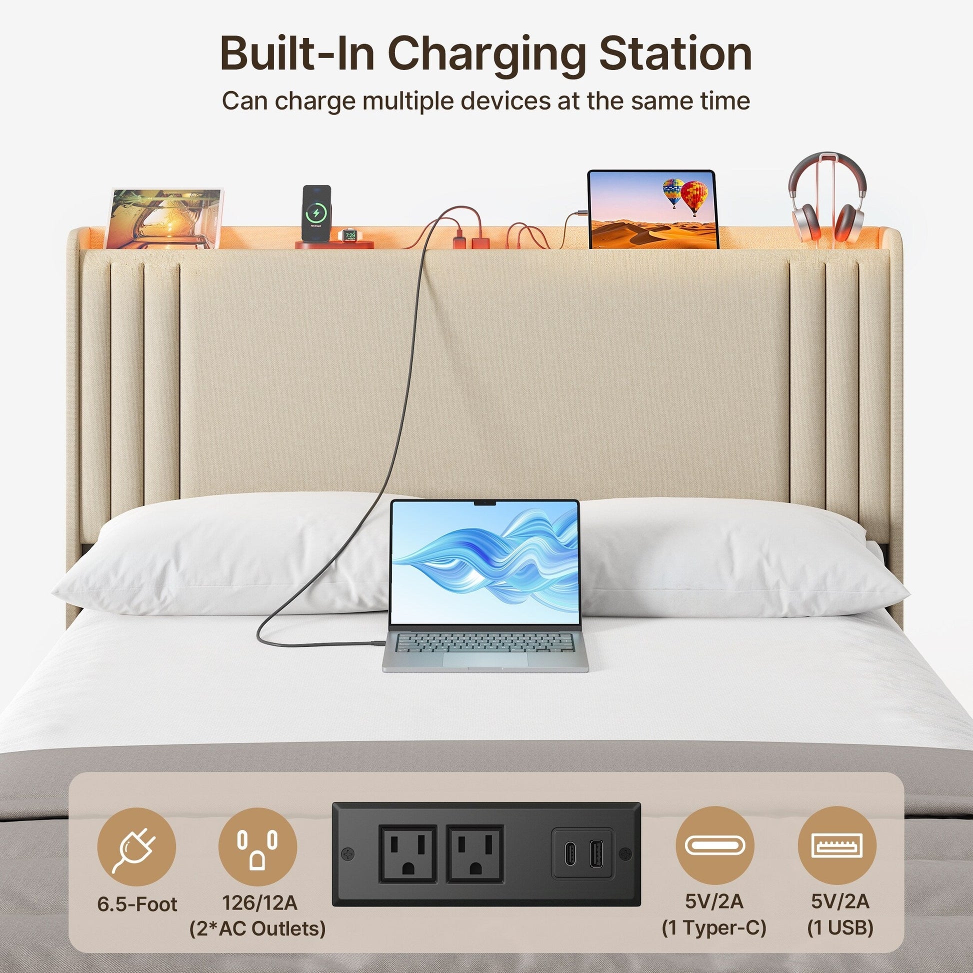 • La tête de lit à accoudoirs offre un confort et un soutien supplémentaires pour se détendre et se reposer.