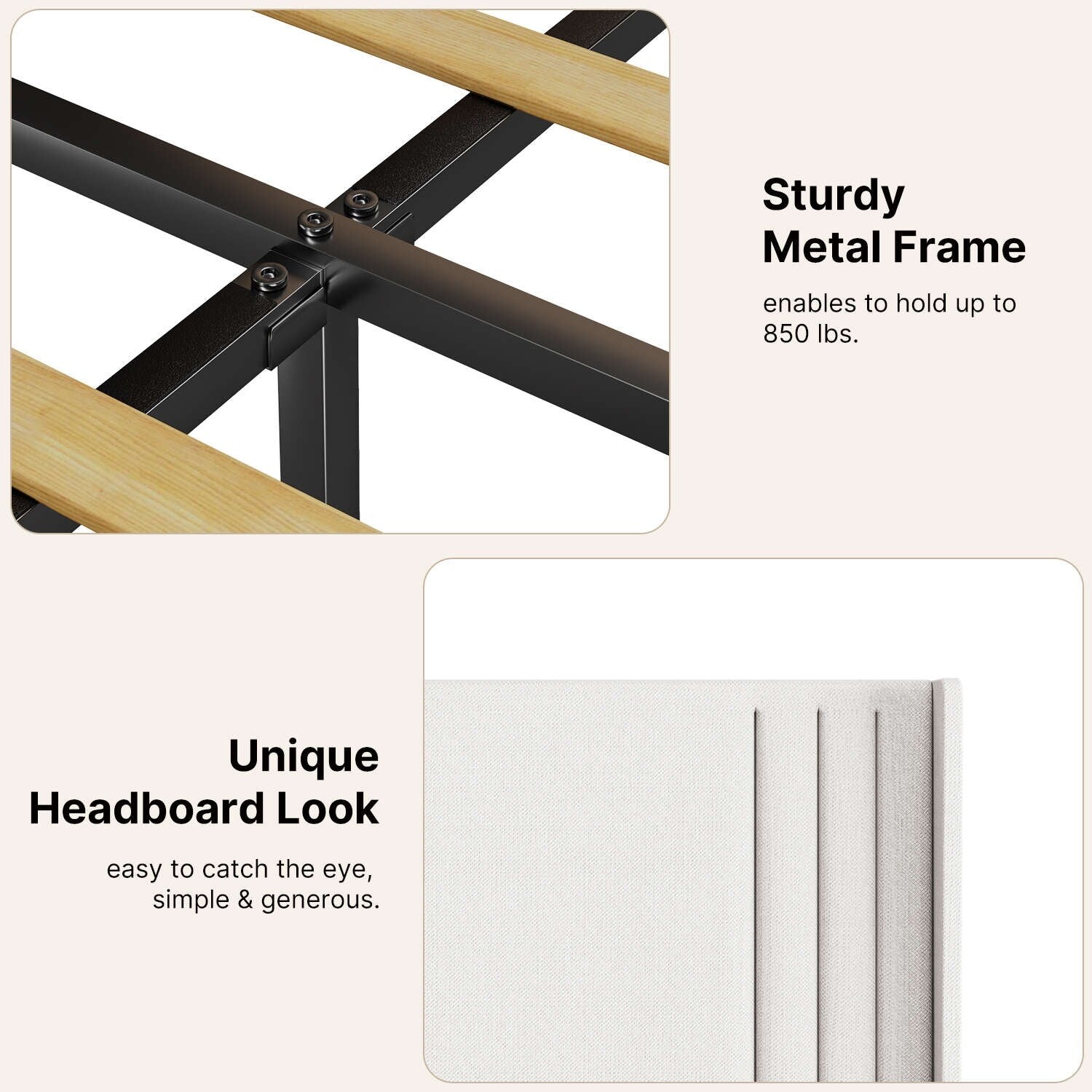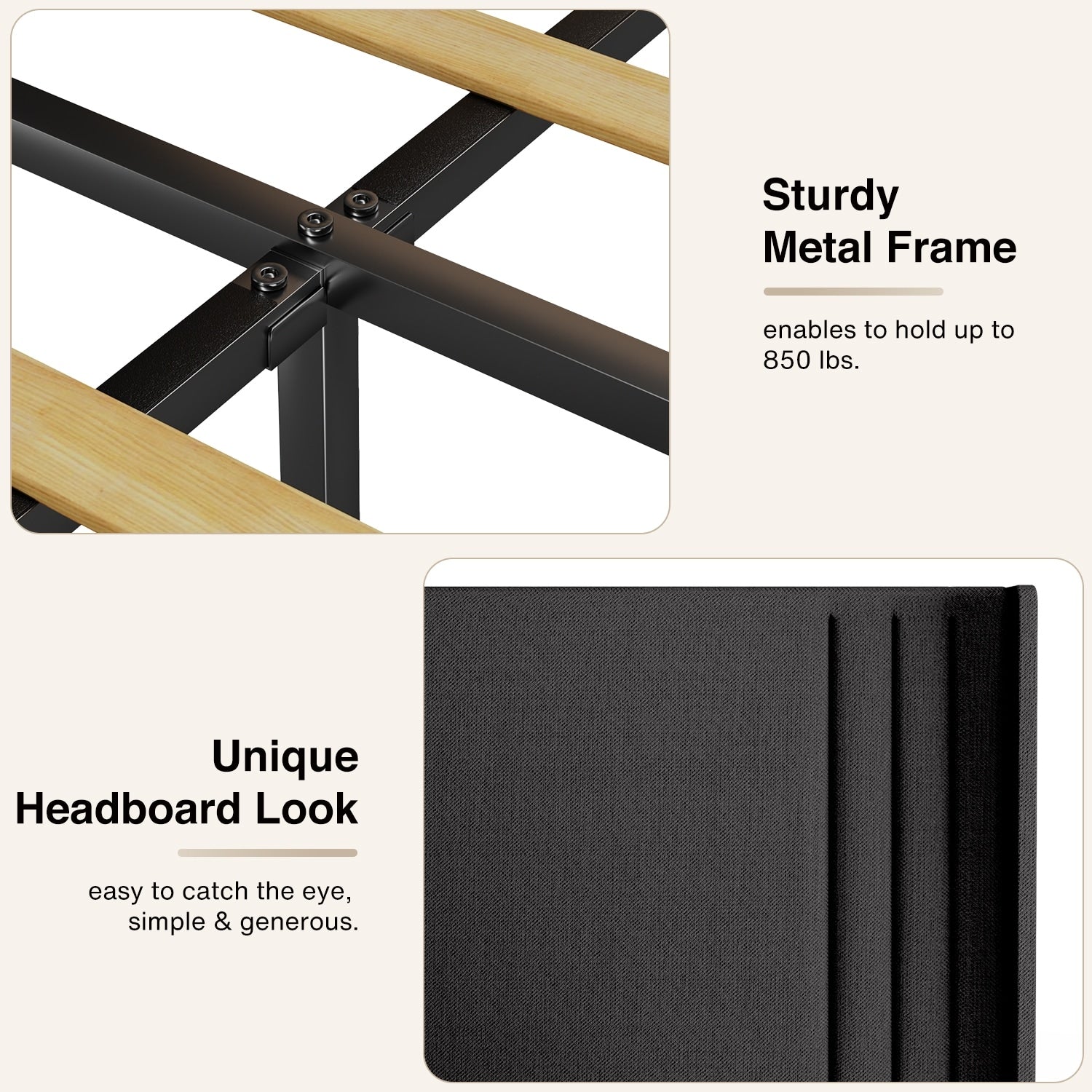 • Montage facile : Ce cadre de lit est facile à assembler grâce à tous les outils et instructions inclus, vous pourrez donc l'installer en un rien de temps et profiter de son confort et de sa beauté.