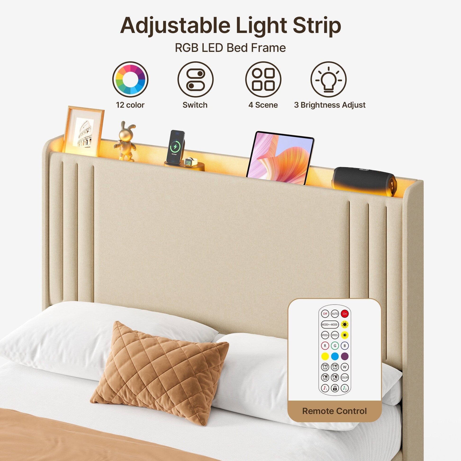 • Tête de lit à oreilles pour un confort accru : La tête de lit capitonnée à oreilles améliore non seulement l'aspect élégant du lit, mais offre également un excellent soutien pour s'asseoir et se détendre. Idéal pour lire, regarder la télévision ou profiter d'un moment de calme au lit.