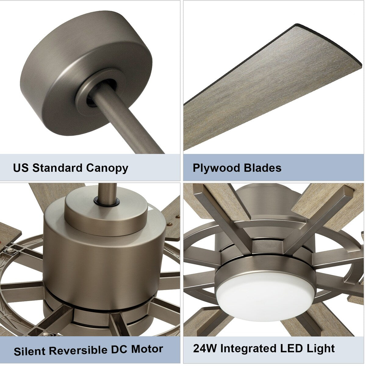 Ventilateur de plafond à télécommande avec éclairage, 8 pales en bois de grande taille