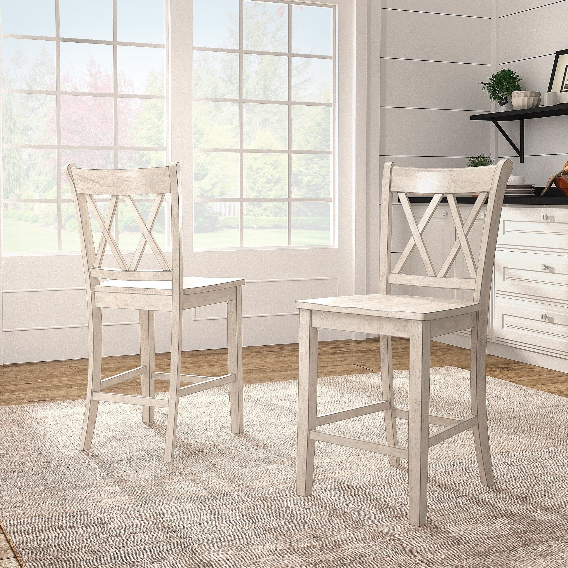 Créez une ambiance rustique et champêtre dans votre salle à manger avec ces chaises de bar à dossier double en X (lot de 2). Ce lot de deux chaises présente un design classique à dossier double en X, à la fois ergonomique et esthétique. Décorées d'une jolie finition imitation bois, ces chaises s'intègrent à divers environnements, aussi bien décontractés que formels. Posées sur une structure robuste en bois de caoutchouc, ces chaises sont conçues pour durer des années.