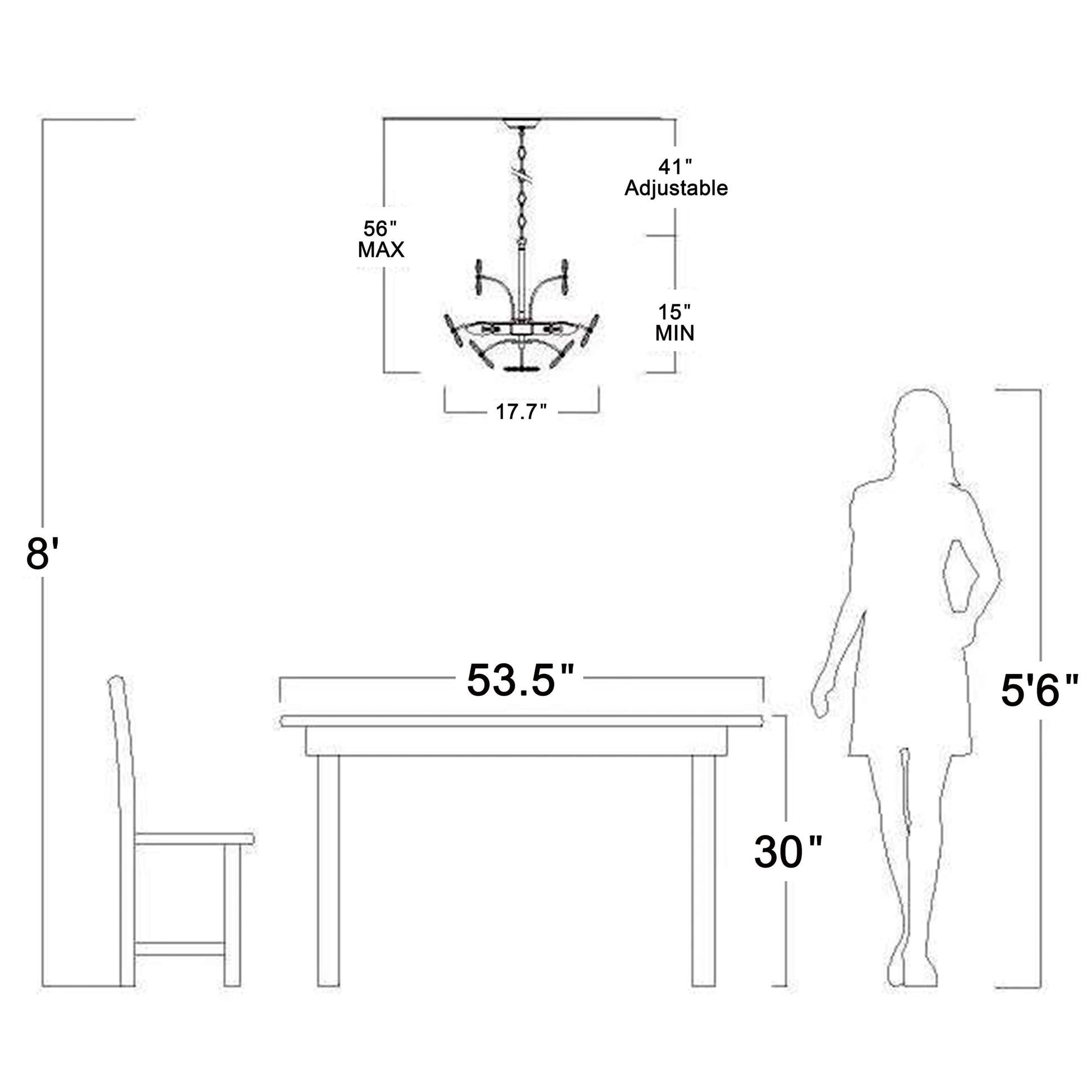 - Hauteur de suspension maximale (du plafond au bas du luminaire) : 56 pouces, hauteur qui peut être réduite.