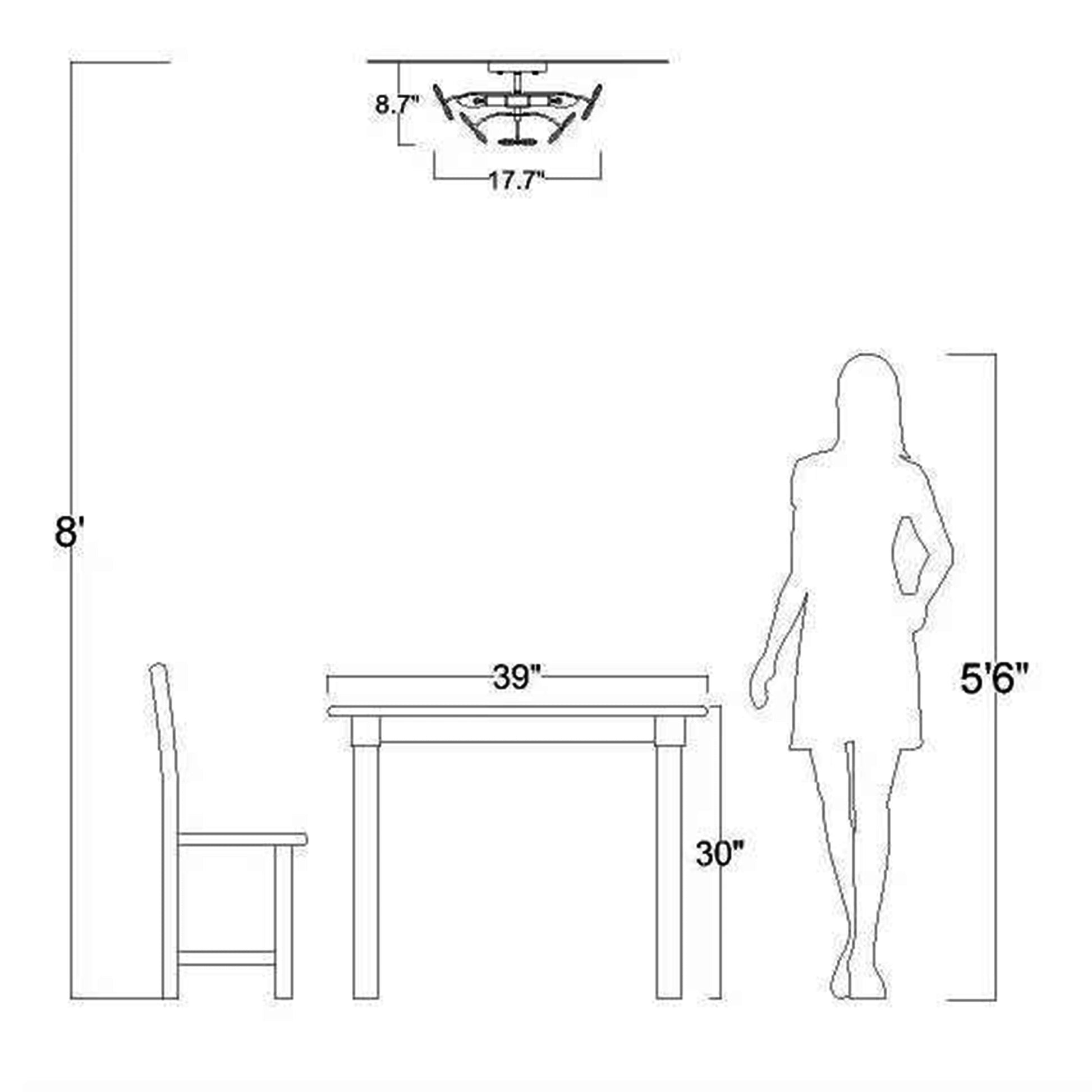 - Appareil : 45 cm de diamètre x 22 cm de hauteur ; Plaque de plafond : 15 cm de diamètre x 2,5 cm de hauteur.