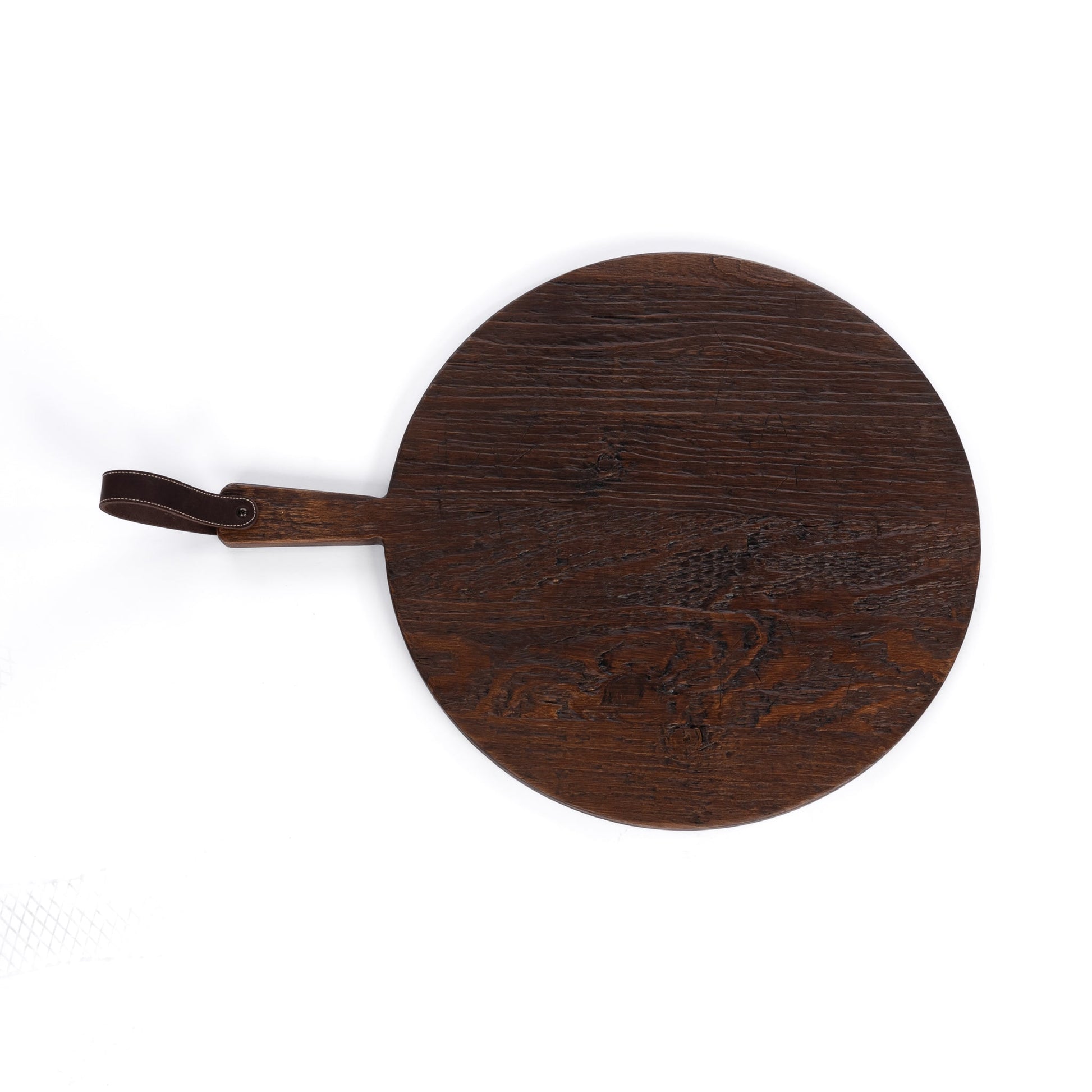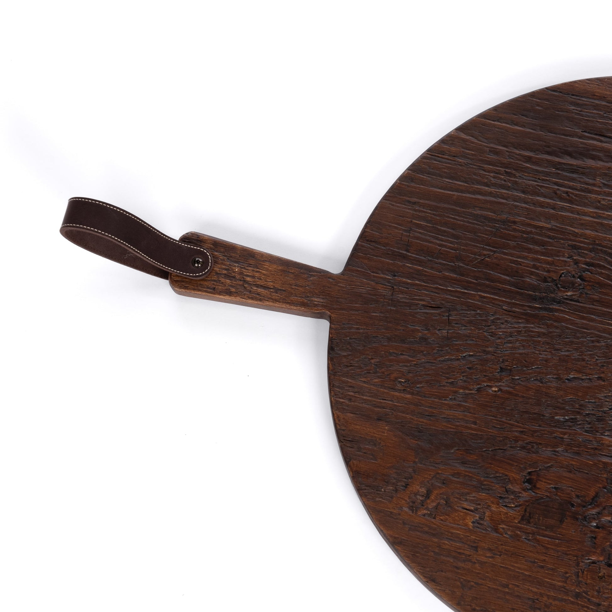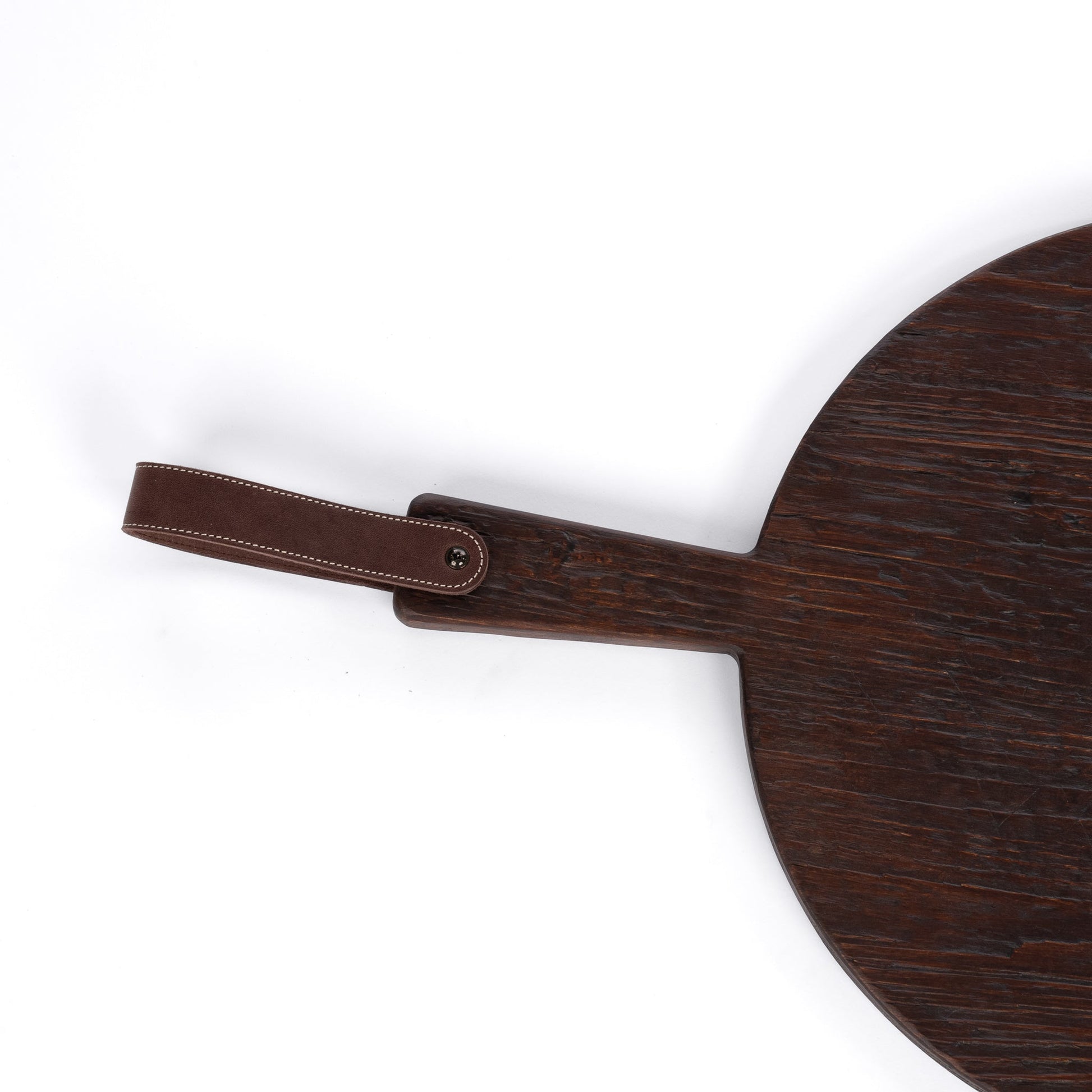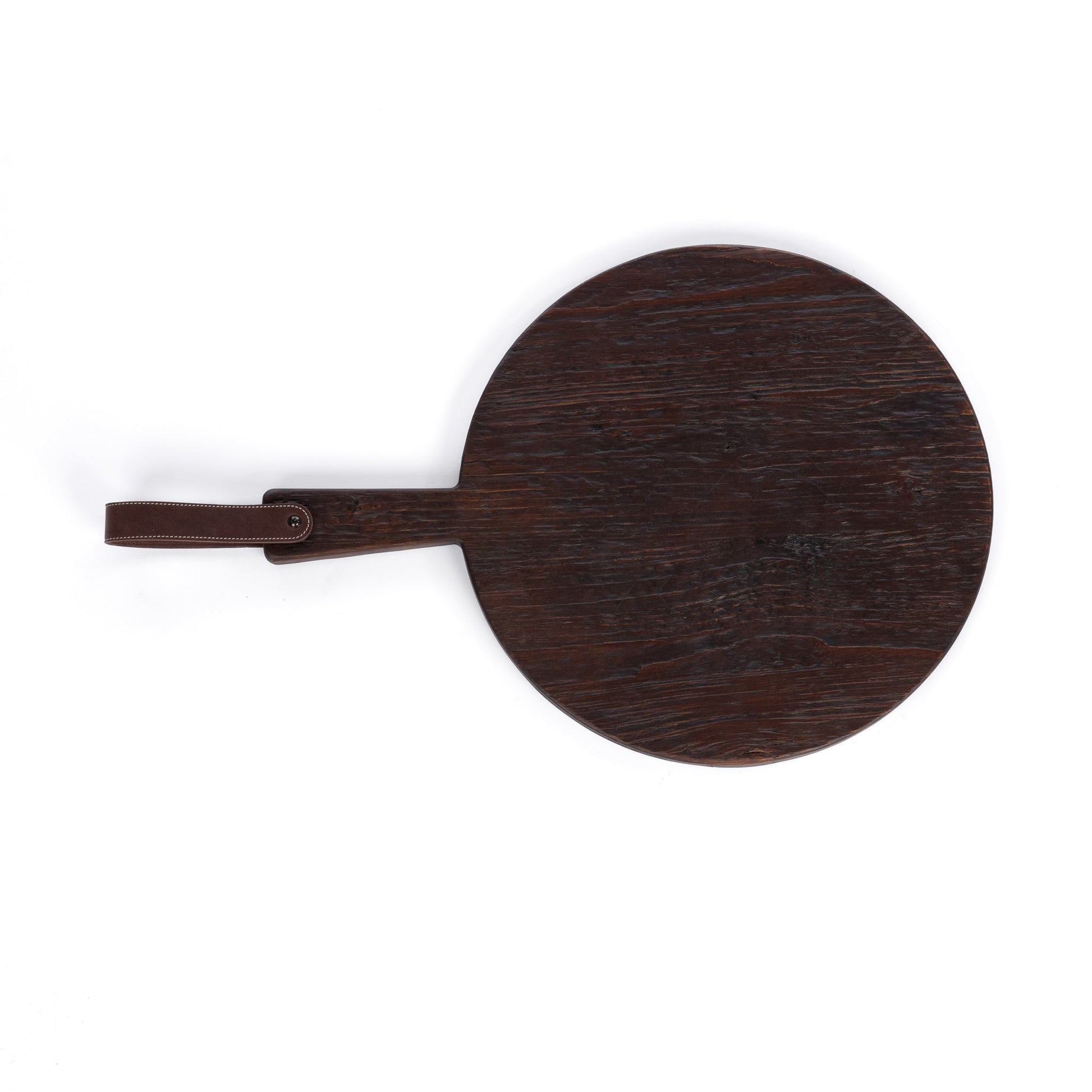 Disponible en deux tailles, la planche à charcuterie ronde Balance est un incontournable de la cuisine, tant pour son utilité que pour son esthétique. Fabriquée à partir de bois recyclé, avec un magnifique veinage naturel et finie avec une riche cire de selle, ces planches sont des pièces parfaites pour servir de la charcuterie ou pour être exposées comme élément décoratif. Une sangle en cuir vieilli orne chaque poignée pour un supplément d'histoire et de détail.