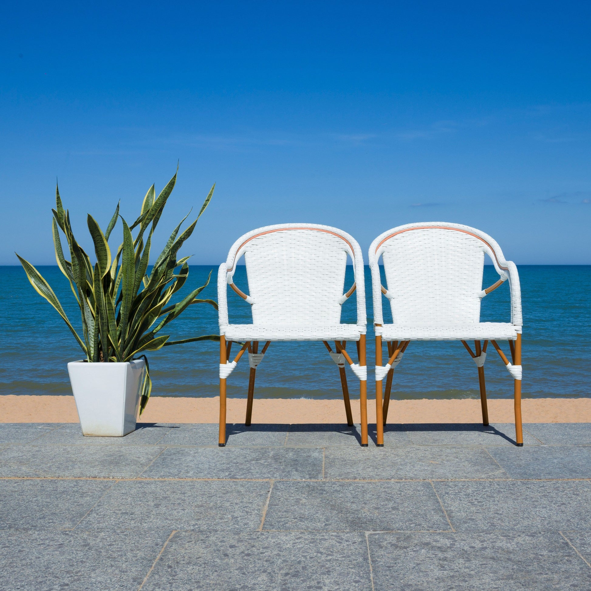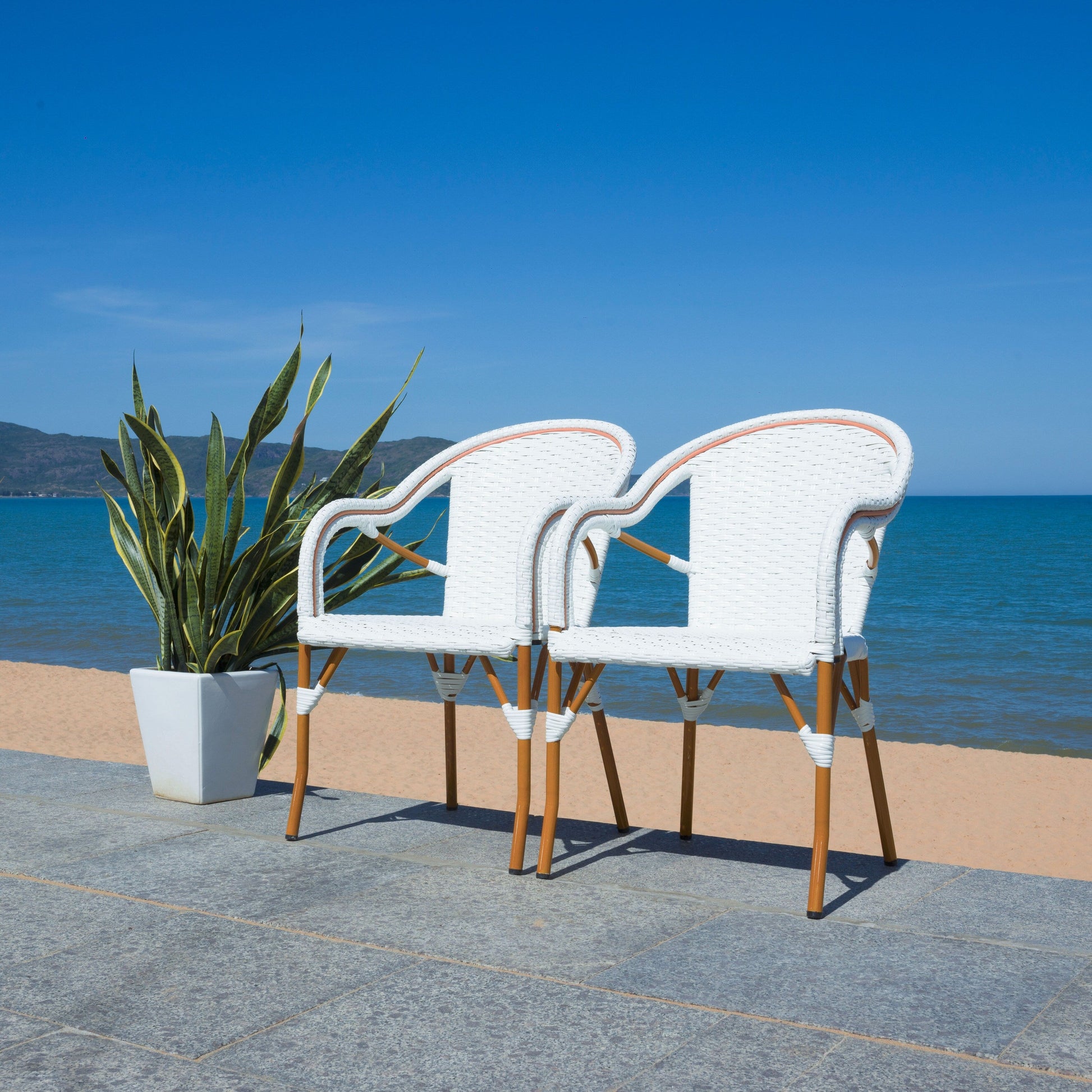 Complétez n'importe quel espace extérieur avec le charme et la chaleur ensoleillée de notre fauteuil. Il revisite la chaise de bistrot française traditionnelle avec une palette de couleurs. Ses contours tressés et ses accoudoirs enveloppants offrent un confort optimal. Avec son faux rotin élégamment enroulé autour d'une structure en aluminium, notre fauteuil capture une beauté texturale résistante au soleil, à la pluie et à la chaleur. Léger et résistant aux intempéries, notre fauteuil constitue un endroit pratique, élégant et confortable pour se détendre ou dîner sur votre patio ou votre terrasse.