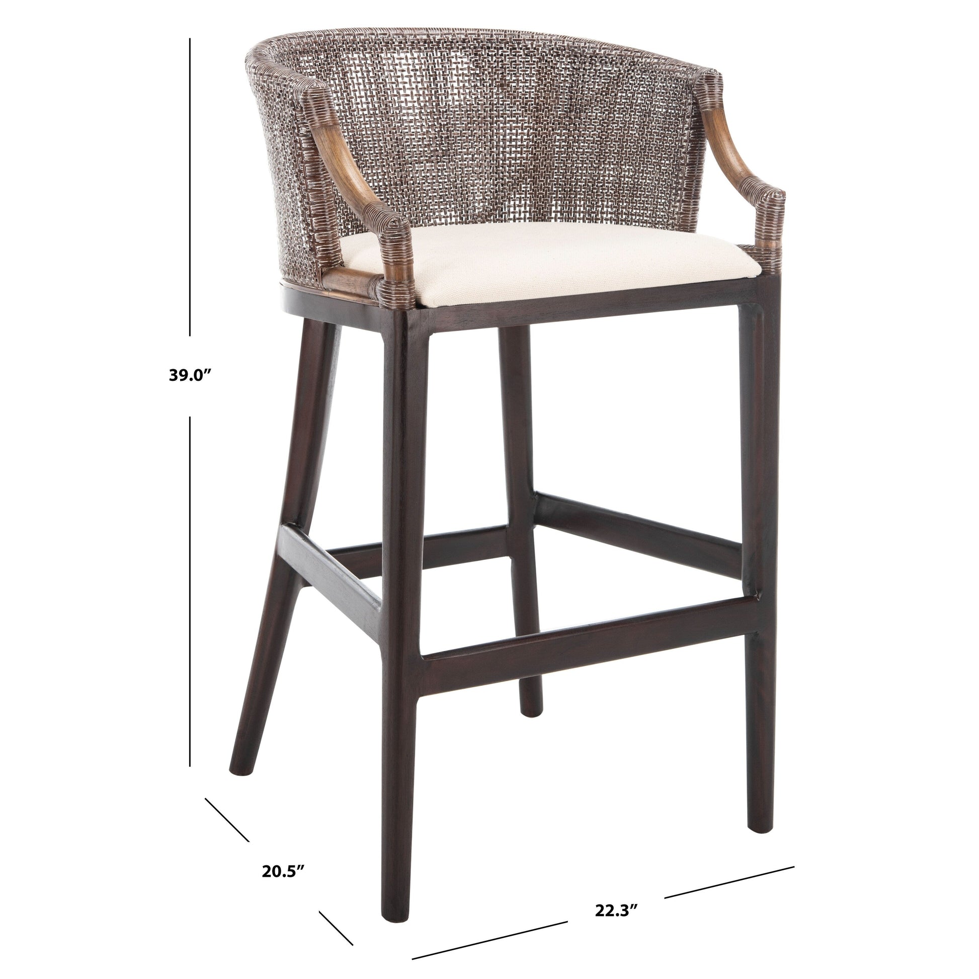 Inspiré par les cachettes secrètes dans des endroits exotiques, le tabouret de bar rend hommage à l'art et à l'aventure de la consommation d'alcool. Les pieds élégants en acajou finement veiné soutiennent magnifiquement le dossier en rotin brun richement texturé de Brando, tandis que son coussin assure des heures de cliquetis de verres confortables.