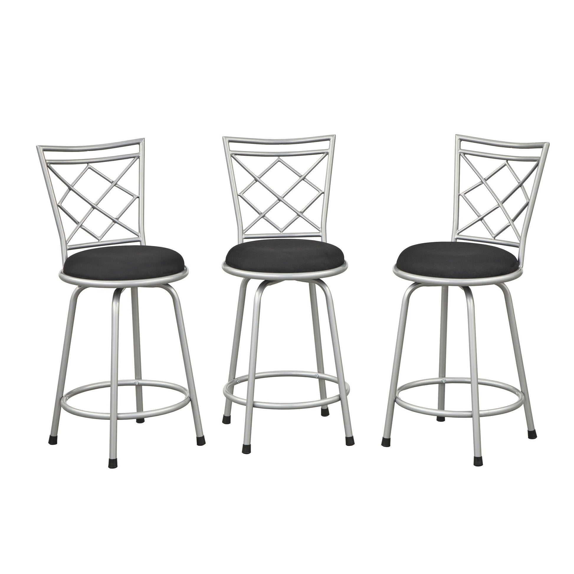 Wonderfully chic and perfectly pretty, these swivel stools are a fun and fabulous addition to your decor. The stools are adjustable and showcase a 360 degree swivel function to allow you to sit and move around with ease. Scintillating finishes in a cross back design is paired with easy-clean microfiber or vegan leather for a fun touch of dimension and glamour. Silver frame with black fabric, brown frame with taupe fabric, black frame with light brown fabric or gold frame with black vegan leather.