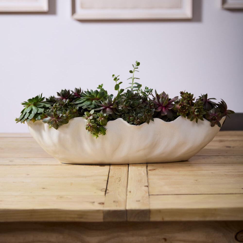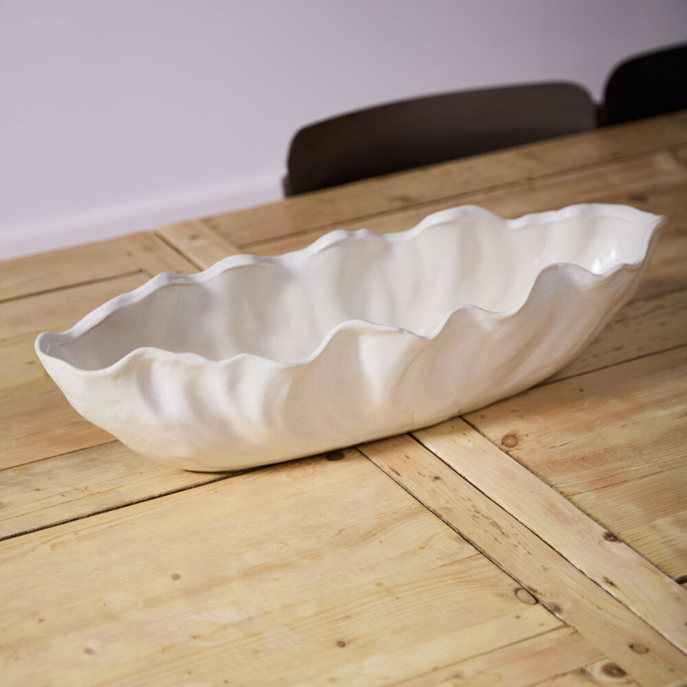 Rendez votre quotidien romantique avec le Skyler Trough, un récipient allongé avec une bordure froncée. Avec une finition en émail réactif blanc chaud, cet accessoire en céramique est la pièce maîtresse idéale pour votre îlot de cuisine ou votre table à manger.