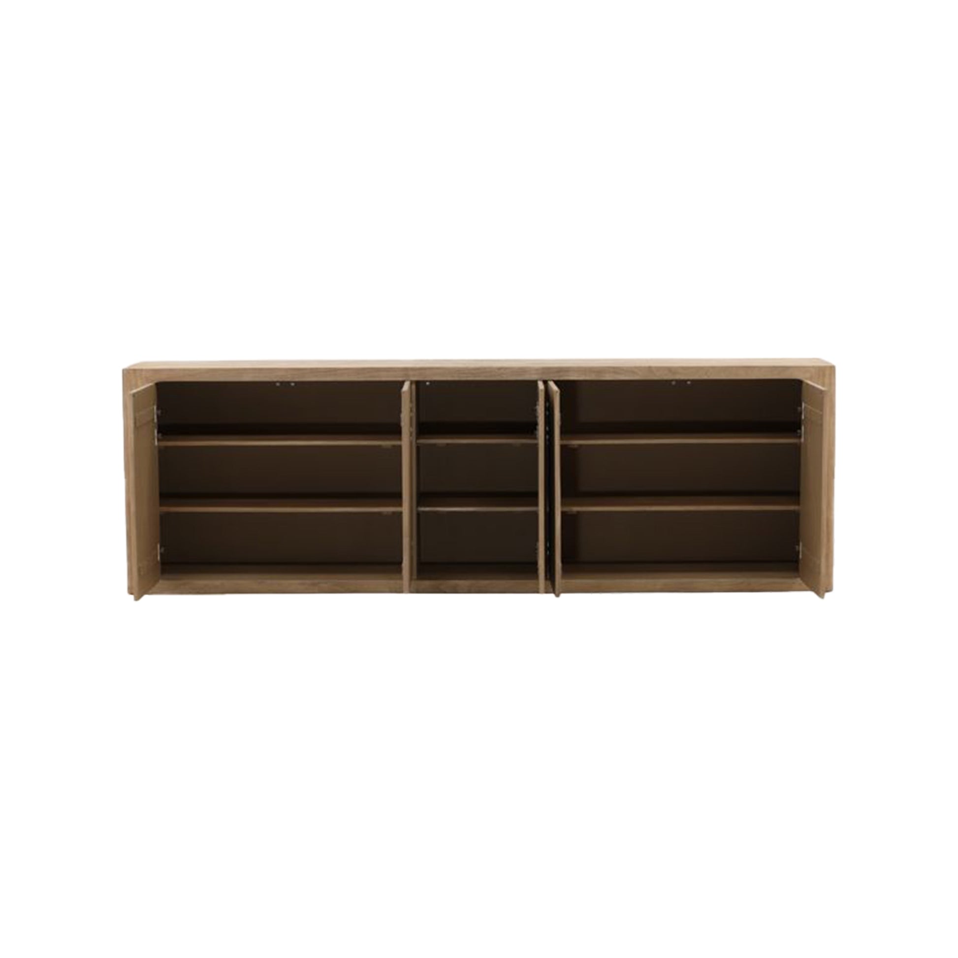 With four doors and clean, streamlined design, the Solmar Oak Sideboard offers generous storage while maintaining a minimalist look. Its natural oak finish makes it a versatile anchor piece for dining or living spaces.