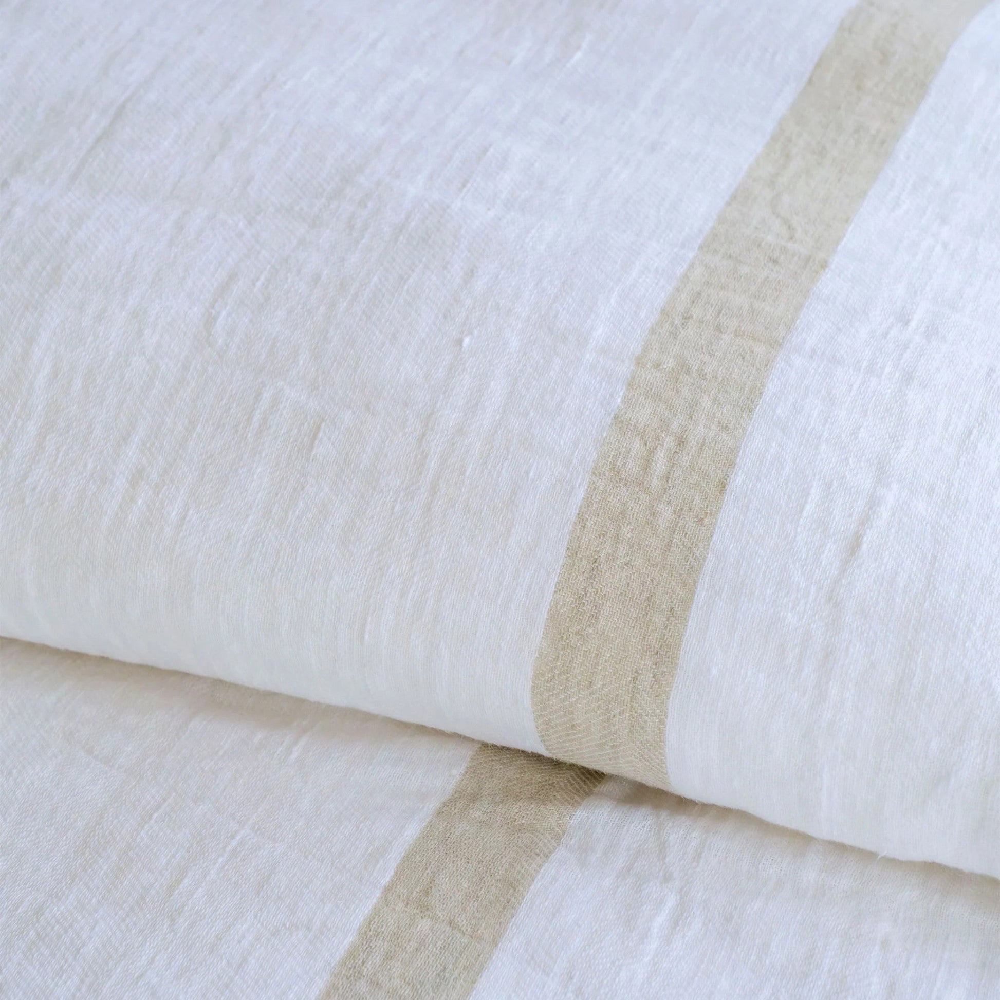 La couette Solstice allie sobriété et sophistication grâce à ses lignes épurées et ses rayures contrastées et audacieuses. Confectionnée en lin doux, elle associe un look tailleur à une finition décontractée pour un confort quotidien. Disponible en Moss/Flax et Blanc/Flax, c'est une pièce à la fois remarquable et polyvalente pour agrémenter votre literie.