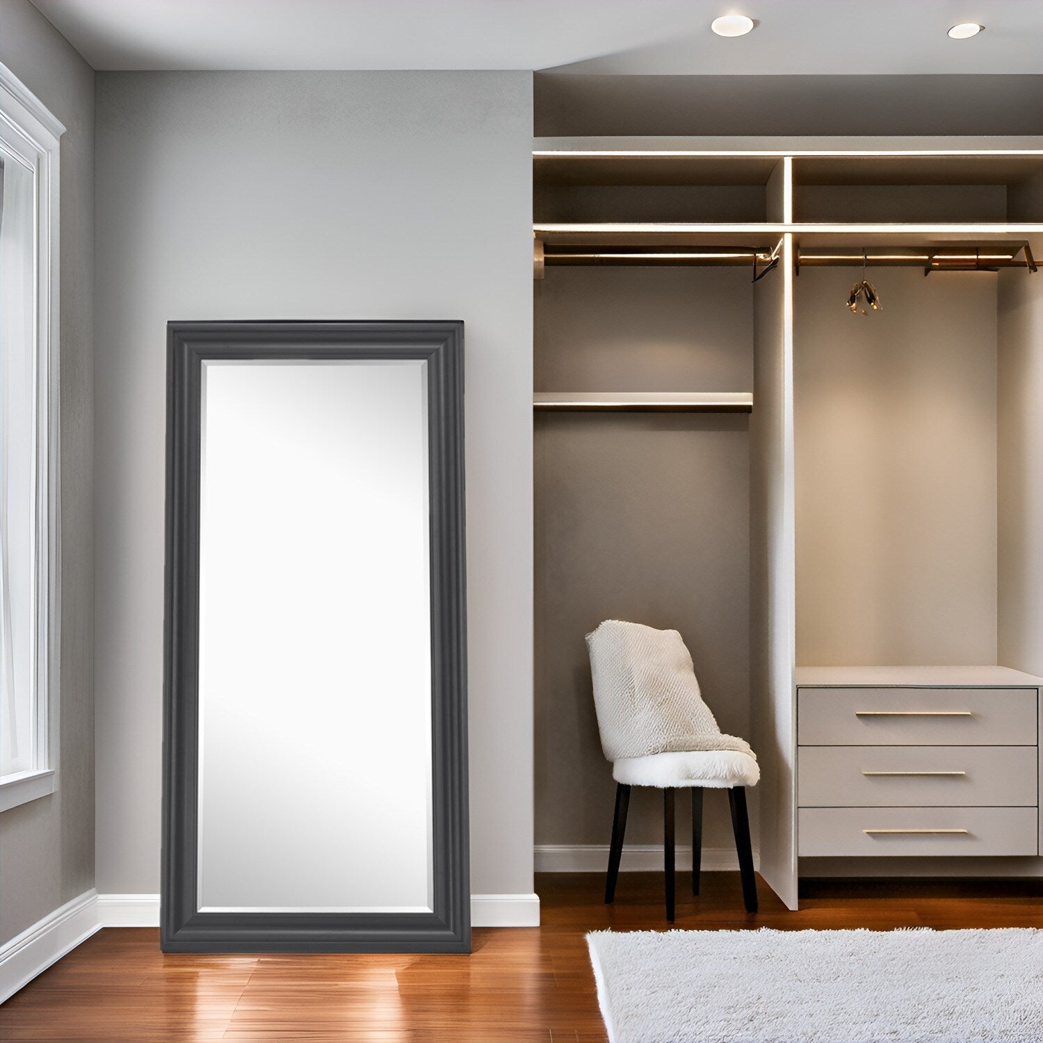 CONSTRUCTION DURABLE : Les grands miroirs pour chambre à coucher sont encadrés dans un cadre durable, ce qui les rend faciles à entretenir et à nettoyer. Le dos est recouvert de papier kraft pour empêcher l'accumulation de poussière à l'arrière du miroir. Solides et durables, sans décoloration, sans odeur, sûrs et respectueux de l'environnement. Un style simple et élégant s'accordera parfaitement avec vos meubles.