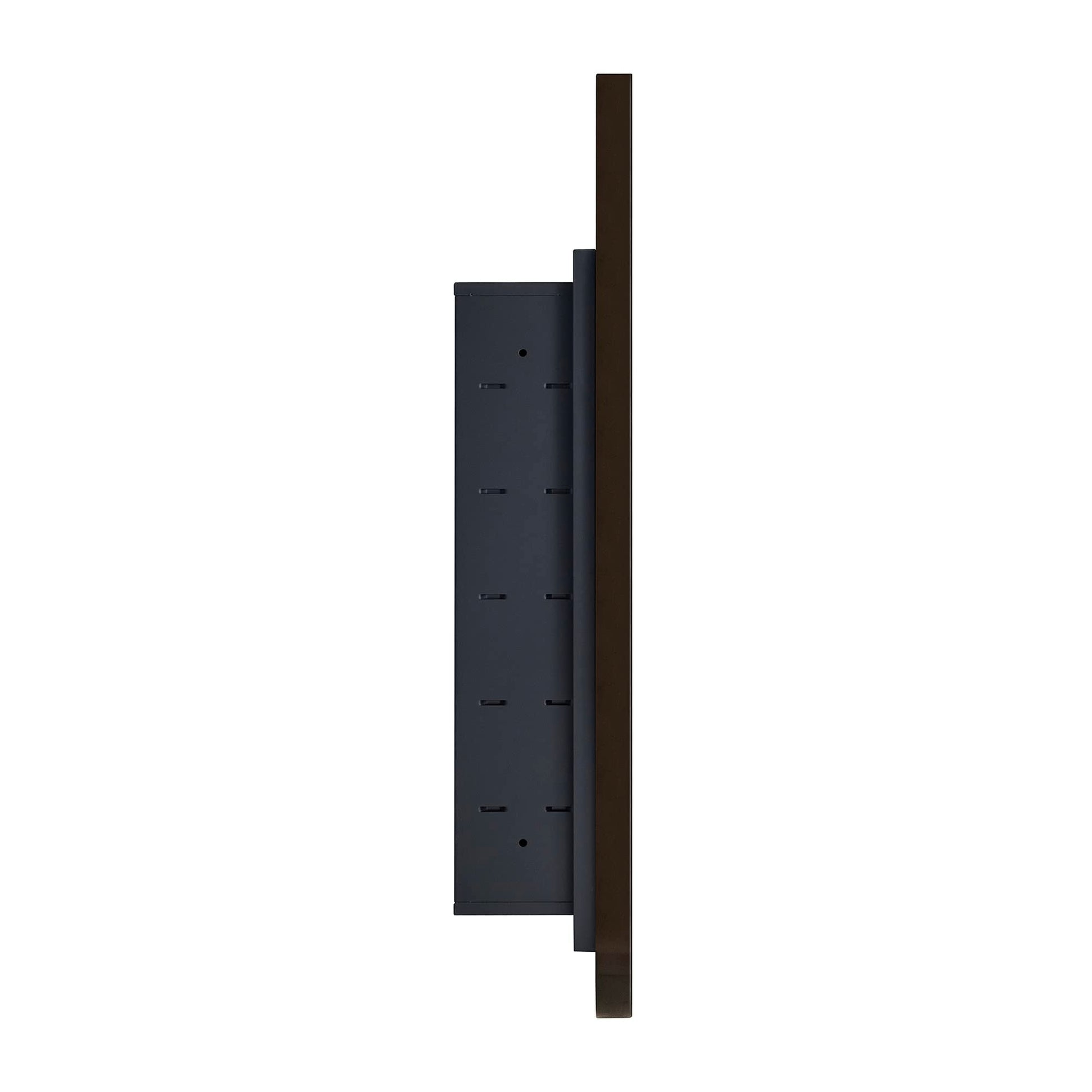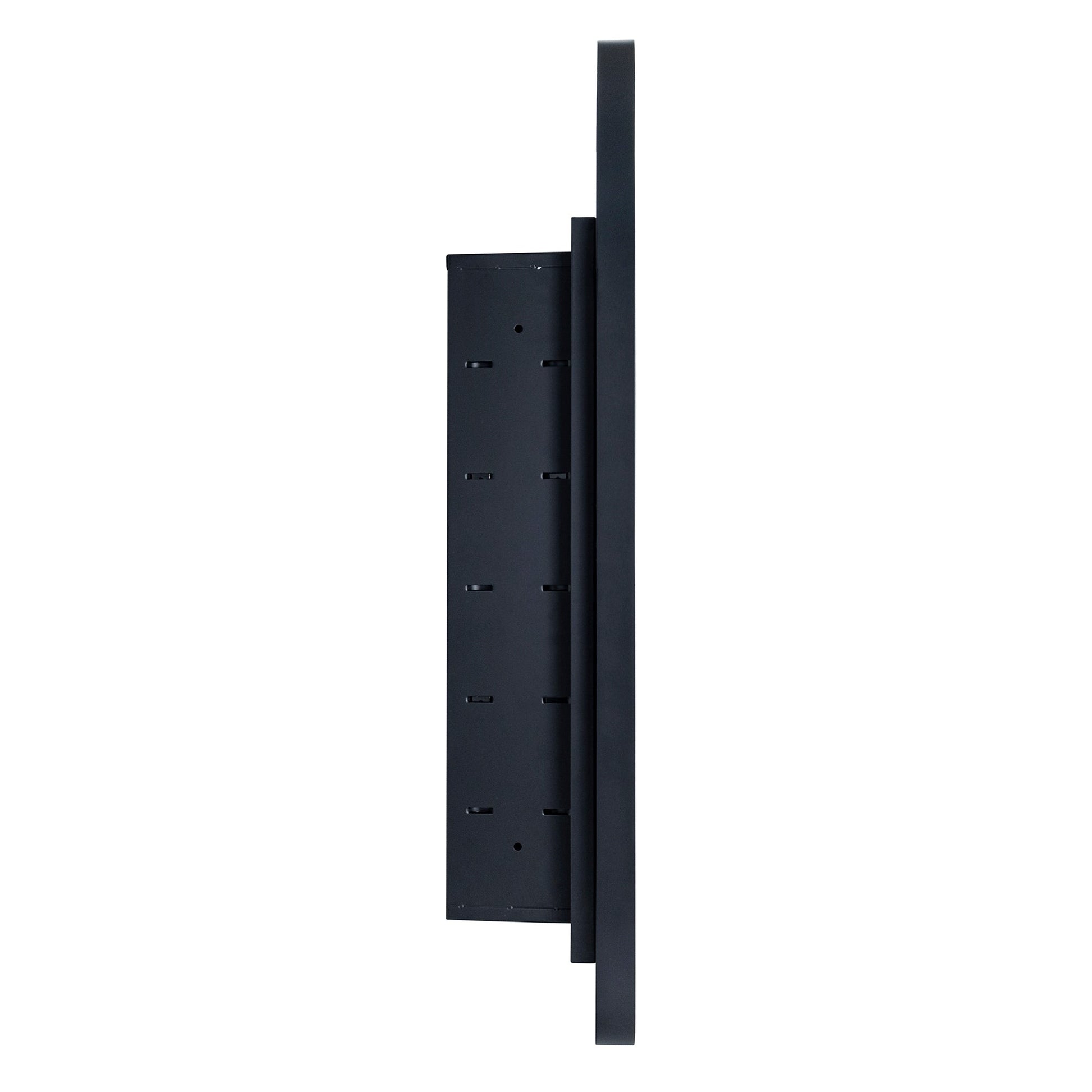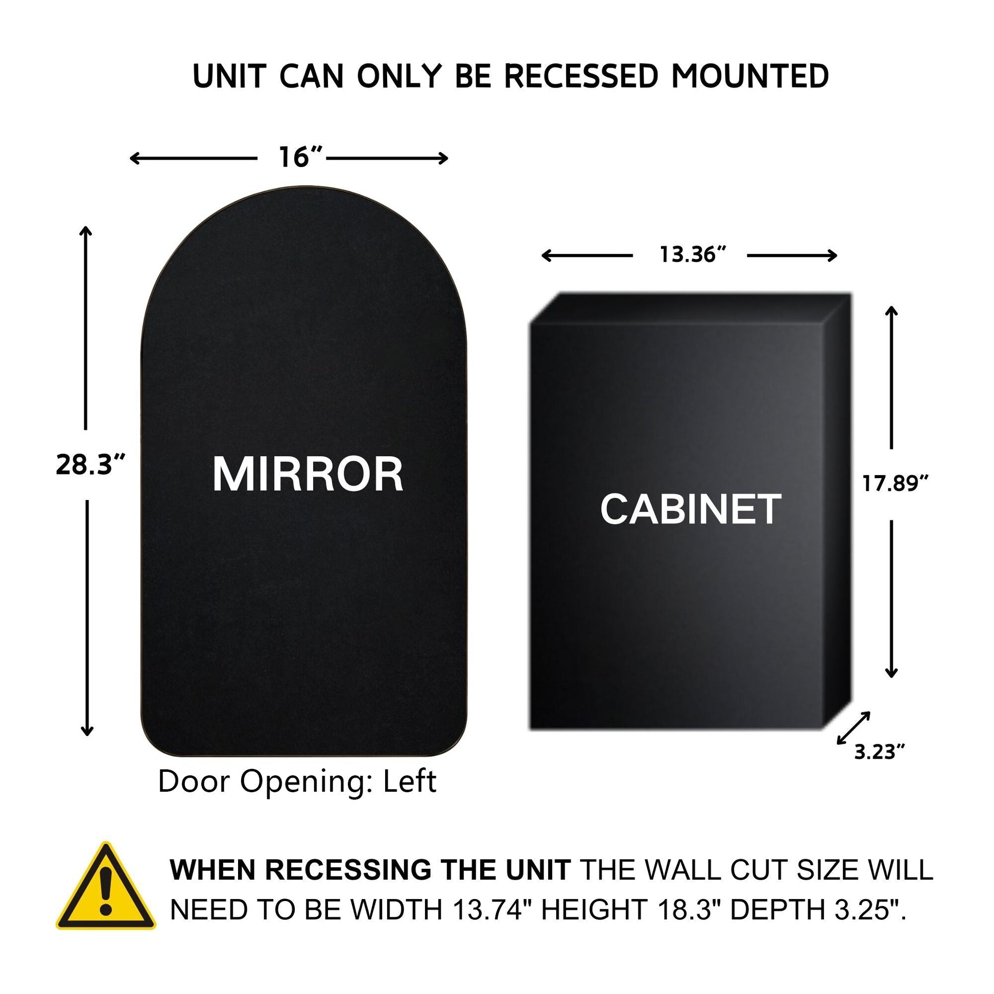 - Armoires à médicaments à cadre métallique et à portes arquées : porte métallique haut de gamme avec finition noire mate. La porte est dotée de charnières à fermeture automatique.