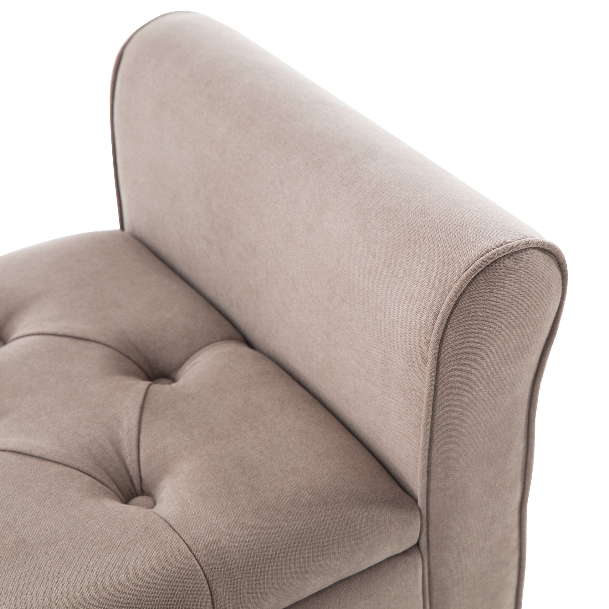 This stylish tufted storage bench brings surprises and happiness to your life! You can place it in the bedroom or living room, not only as a piece of furniture but also to improve the overall design of the home, ideal for your family and pets' uses. The window storage bench features simple rolled arms for a luxurious look, put a comfortable pillow along the top and it becomes a cute little couch.The bench is upholstered in high-quality polyester fabric, providing a soft and comfortable seating experience. The tufted flip-top design adds a touch of sophistication, while also allowing easy access to the ample storage space inside. Supported by sturdy wooden legs, it not only looks great but also ensures durability and stability.