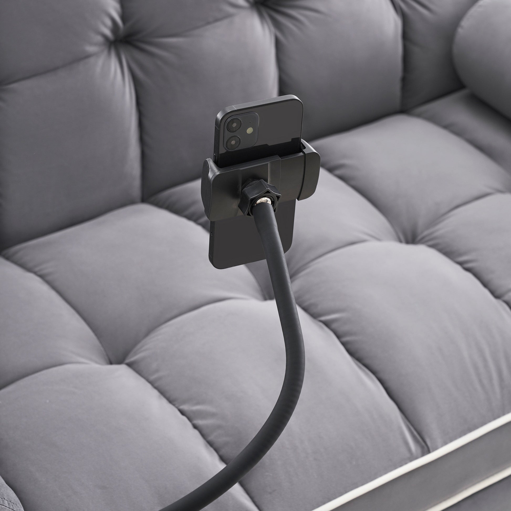 Support pour téléphone portable : Un support pivotant pour téléphone portable est disponible pour vous libérer les mains et vous permettre de profiter de vos films. Ce canapé-lit est également livré avec 2 coussins moelleux. Le sac de rangement sur le côté est parfait pour ranger les téléphones portables, les bouchons d’oreille, les télécommandes, etc. Vous pouvez regarder votre film confortablement installé sur votre canapé.