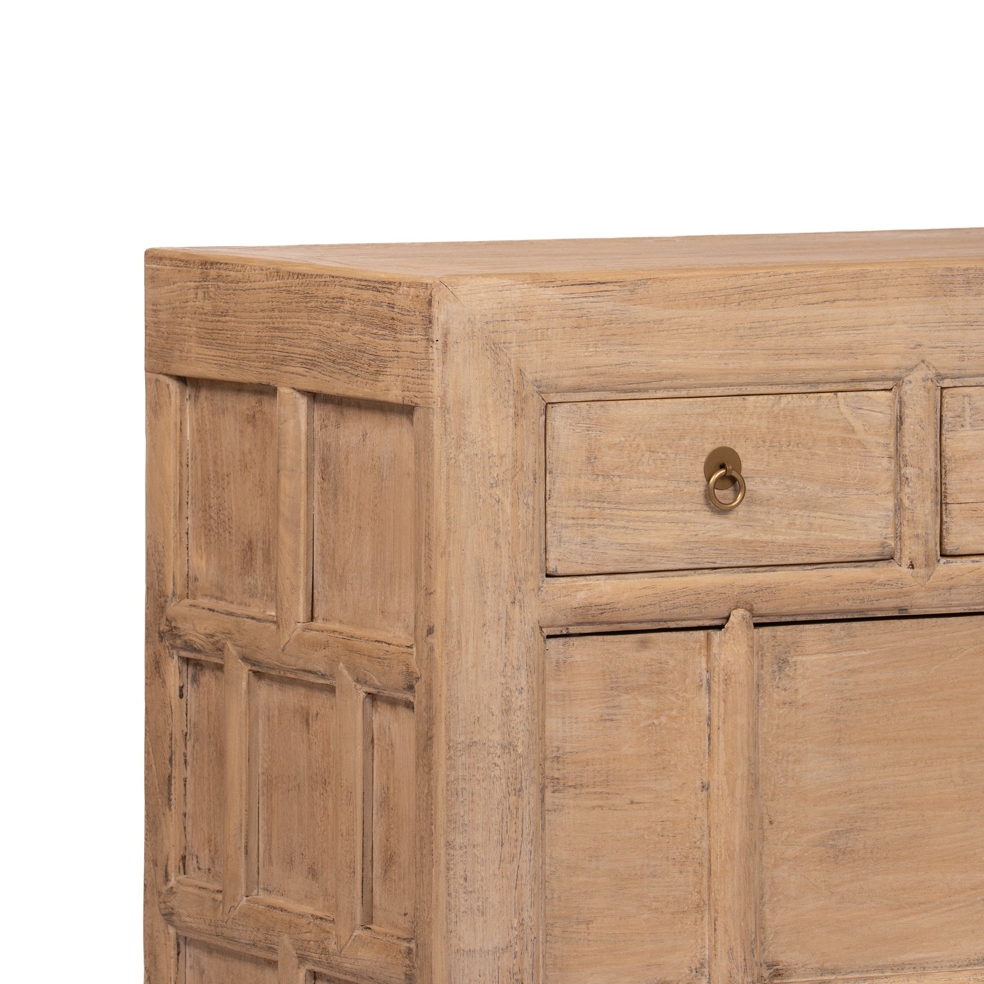 Où la forme rencontre la fonction, la console Vesa présente 4 tiroirs et deux armoires surdimensionnées, le tout dans un magnifique design en bois recyclé. Fabriquée à la main à partir de matériaux de récupération, chaque armoire est unique et présente des caractéristiques distinctives forgées par le passage du temps et de nombreuses années d'utilisation. Parfaite pour les entrées, derrière votre canapé ou comme solution de rangement dans un bureau à domicile, la console Vesa est aussi polyvalente qu'elle est visuellement saisissante.