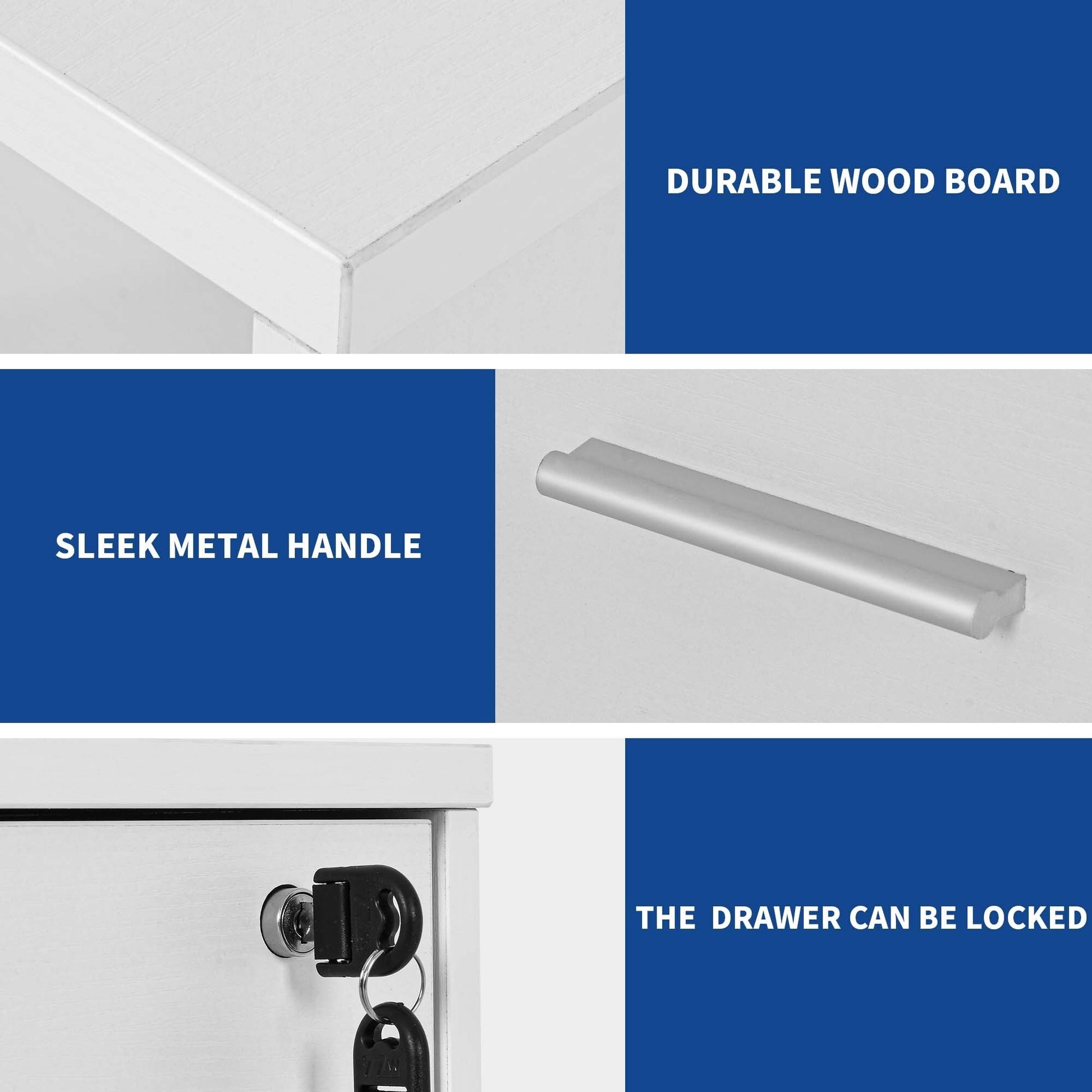 • 3. Keep Your Files and Valuables Secure: The bottom file drawer has hanging bars that can hold A4, letter and legal sized files in an organized way. The top drawer has a lock that protects your personal belongings from unauthorized access.